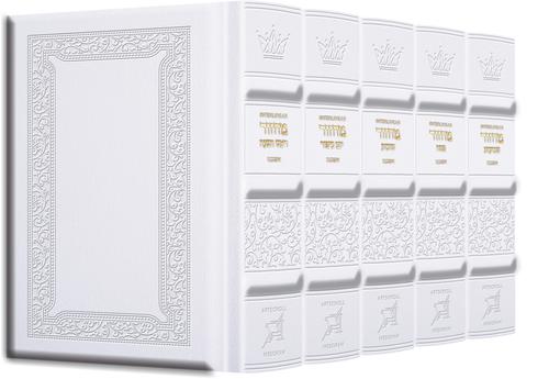 Schottenstein Interlinear Machzor 5 Vol. SET Pocket Size Ashkenaz Yerushalayim Hand-Tooled White leather