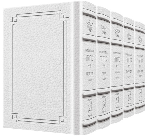 Ashkenaz - Signature White Leather Schottenstein Ed. Interlinear 5 Vol SET