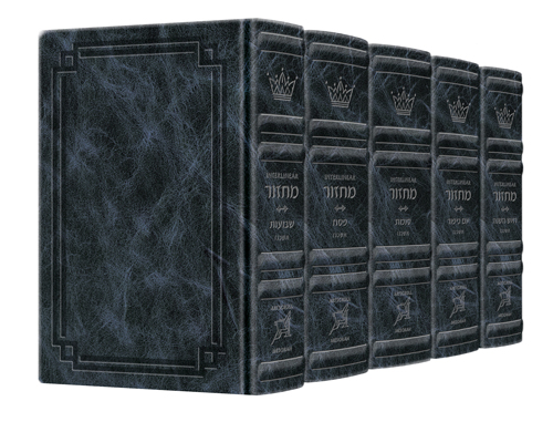 Signature Leather Collection Sefard HEBREW/ENGLISH Full-Size 5 Vol Machzor SET Navy