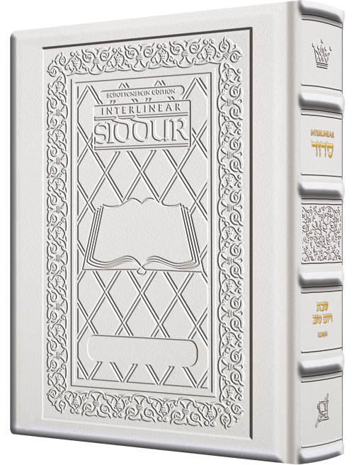 Schottenstein Interlinear Siddur Shabbos Full Size Sefard Hand-tooled White